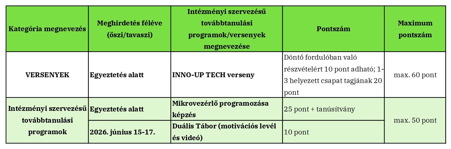 - A PE-vel kialakított közös képzési program alapján megvalósított technikusképzés, a kreditbeszámításban érintett alapképzésre való jelentkezés esetén: 50 pont